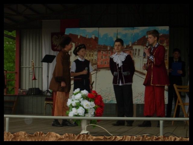 Ciekawą formą przybliżenia widzom sensu obchodów tego święta, były scenki, w których uczniowie zaprezentowali swoje umiejętności aktorskie. Wcielili się w role postaci historycznych z XVIII wieku: króla Stanisława Augusta Poniatowskiego, posłów m. in. Ignacego Potockiego, Hugona Kołłątaja, marszałka Sejmu Wielkiego Stanisława Małachowskiego oraz mieszczan warszawskich, magnatów i szlachty. Uczniowie pochwalili się swoimi umiejętnościami wokalnymi w piosenkach: "Witaj majowa jutrzenko", „Miejcie nadzieję”, „Piosenka o wschodzie słońca”.