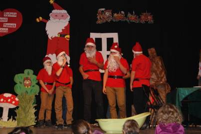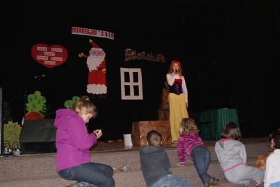 Z kolei uczennice klasy III gimnazjum: Sara Drozd, Angelika Kula, Marlena Madeja, Kinga Mazur zostały pomocnicami świętego Mikołaja. Nasze urocze Śnieżynki pomagały Mikołajowi we wręczaniu dzieciom prezentów.