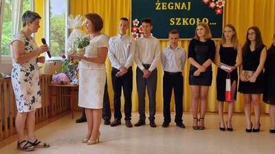 Gorące słowa pożegnania i życzenia wszelkiej pomyślności przekazała uczniom pani dyrektor Aurelia Mącior. Za długoletnią współpracę złozyła także serdeczne podziękowania przewodniczącej Rady Rodziców- p. Elżbiecie Sysło.