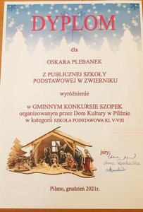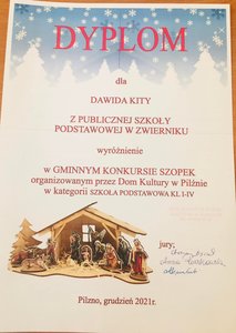 KONKURSY ŚWIĄTECZNE- WYRÓŻNIENIA Miło nam poinformować, iż prace naszych uczniów biorących udział w konkursie gminnym organizowanym przez GOK w Pilźnie zostały docenione przez jury konkursowe. Galeria zdjęć Powiązane wiadomości MAROKO- SPOTKANIE Z PODRÓŻNIKIEM Z GRUPY "TRZASK" "ZAŚPIEWJMY MALEŃKIEMU"- JASEŁKA W ZWIERNIKU KONKURS MATEMATYCZNY KONKURSY ŚWIĄTECZNE- WYRÓŻNIENIA ZABAWA KARNAWAŁOWA UCZNIÓW KLAS I- III SP. SUKCES NASZYCH UCZNIÓW Drukuj Udostępnij Data dodania: 24.01.2022 Wyświetlono: 124 Aktualności