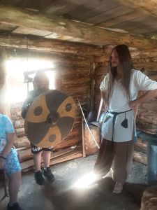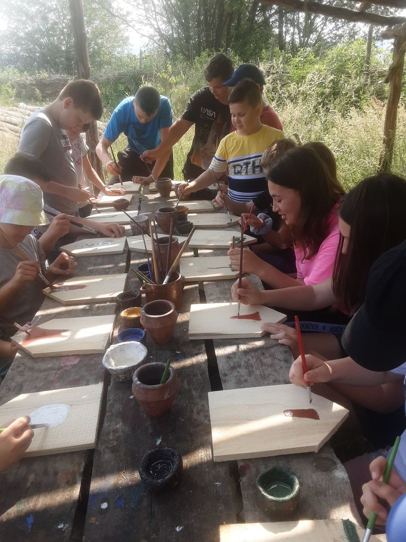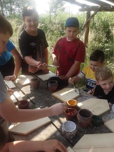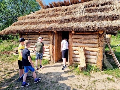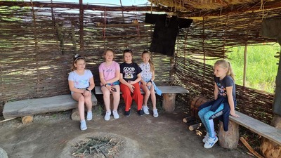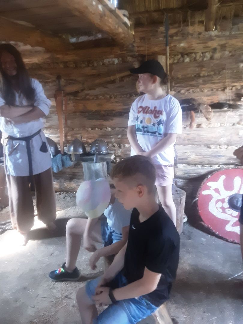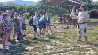 We wtorek 7 czerwca 2022 r. 34 uczniów z naszej szkoły pod opieką p. Edyty Potok, p. Marzeny Świerczek i p. Jolanty Placek pojechało do osady słowiańskiej w Strzegocicach. Wzięliśmy udział w żywej lekcji historii: wysłuchaliśmy ciekawostek na temat życia Słowian, ich obyczajów, stylu życia. Podczas warsztatów z Przemysławem, przy pomocy własnoręcznie wykonananych farb, każdy mógł namalować swój symbol na tarczy. Doskonaliliśmy swe umiejętności strzeleckie pod okiem doświadczonego Chocibora. Uczniowie mogli też przygotować sobie posiłek na palenisku oraz kupić pamiątki. Podziwialiśmy też zielona wzgórza rozpoczynających się tutaj Karpat oraz zalew w Strzegocicach.
