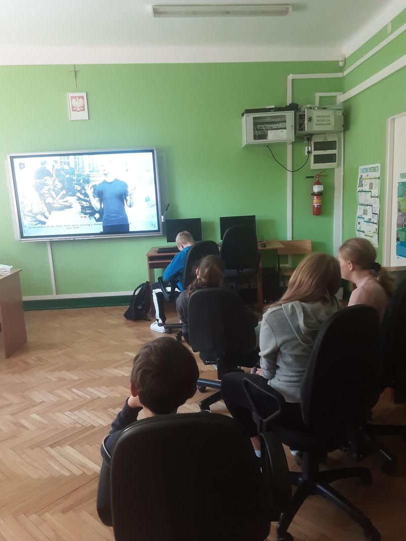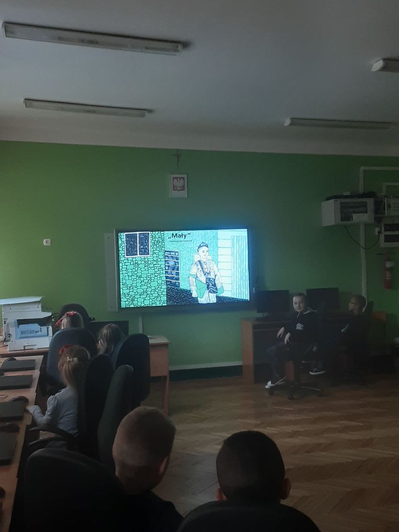 O POWSTANIU WARSZAWSKIM". Poznali powstańcza przygodę małego Władka. Starsi wysłuchali słuchowiska "Mały roznosiciel nadziei". Poznali historię Pana Stanisława. Przenieśli się wraz z nim do wojennej, powstańczej Warszawy i byli świadkami pięknej przyjaźni małego chłopca i dzielnej łączniczki. Uczniowie klas VII- VIII obejrzeli filmy poświęcone samemu powstaniu oraz życiu warszawiaków w tym trudnych 63 dniach, gdy nie tylko walczono, ale też starano się zachować pozory normalności. Uczniowie klas V- VIII wysyłali też wirtualne kartki z podziękowaniami dla powstańców.