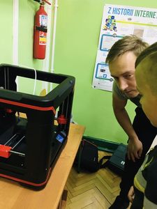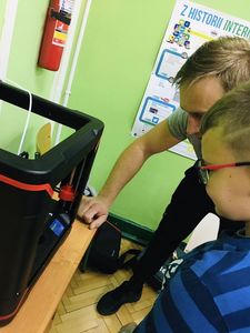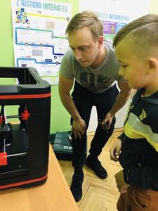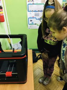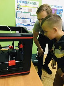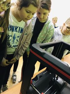 We wtorek 22 października 2022 r. uczniowie kl. IV i V wzięli udział w uruchamianiu drukarki 3D, która nasza szkoła otrzymała w ramach projektu "Laboratoria przyszłosci". Przedstawiciel firmy Bambino pokazał dzieciom jak działa drukarka, jak ją uruchomić, zaprogramować. Uczniowie przyglądali się wydrukowi breloczka- symbolu husarii.