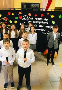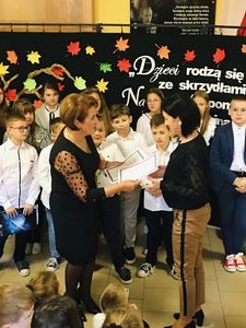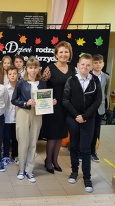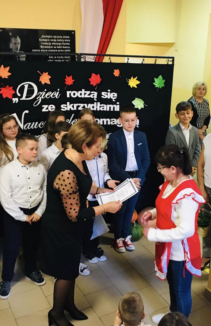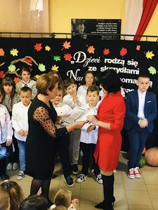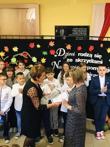 W dniu dzisiejszym uczniowie klasy IV wraz z wychowawczynią p. Anną Rosek oraz p. Eweliną Placek- Sojka przedstawili krótki montaż poetycko- muzyczny, w którym podziękowali wszystkim nauczycielom oraz pracownikom szkoły za ich poświęcenie i zaangażowanie w pracy dydaktycznej i opiekuńczo-wychowawczej. Po przedstawieniu pani dyrektor Aurelia Mącior wręczyła Nagrody Dyrektora wyróżnionym nauczycielom i pracownikom obsługi. Złożyła również wszystkim zatrudnionym w szkole życzenia z okazji ich święta.