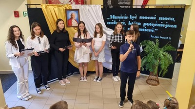 DZIEŃ PAPIESKI W dniu dzisiejszym uczennice z klasy VII i VIII przedstawiły montaż poetycko-muzyczny przygotowany pod kierunkem pani Heleny Laski, poświęcony pamięci naszego wielkiego rodaka, Papieża- Polaka świętego Jana Pawła II. Watch | Facebook Galeria zdjęć Powiązane wiadomości JAK DZIAŁA DRUKARKA 3D? AKADEMIA Z OKAZJI DNIA NAUCZYCIELA PASOWANIE UCZNIÓW KLASY I SP. DZIEŃ PAPIESKI WYJAZD DO MULTIKINA I "PROMIENNEGO ZAMKU" "SZKOŁA PAMIĘTA" Drukuj Udostępnij Data dodania: 21.10.2022 Wyświetlono: 86 Aktualności
