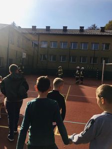 W środę 26 października 2022 r. uczniowie i pracownicy naszej szkoły wzięli udział w próbnej ewakuacji przeprowadzonej pod fachowym nadzorem strażaków z OSP w Zwierniku. Zebrani na szkolnym boisku wysłuchali krótkiego wykładu instruktażowego dotyczącącego prawidłowego zachowania się w przypadku zagrożenia pożarowego.