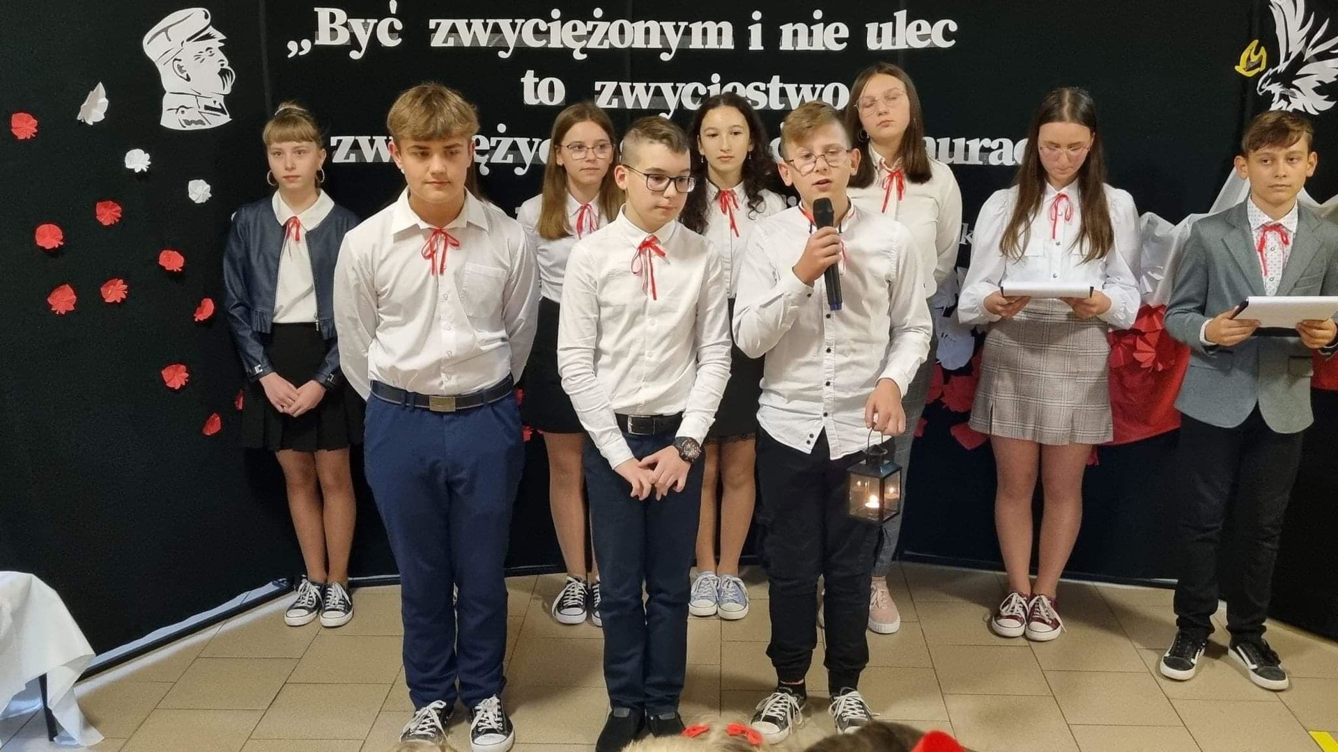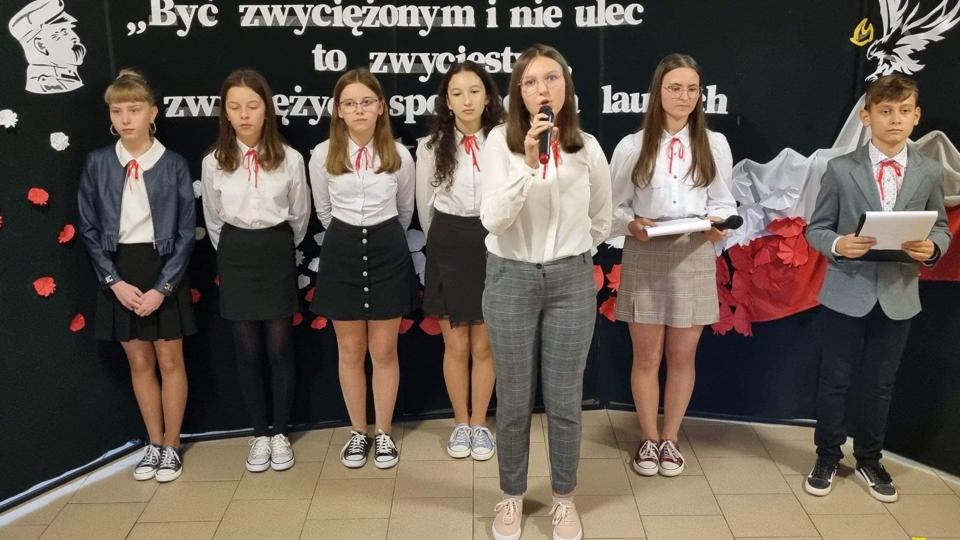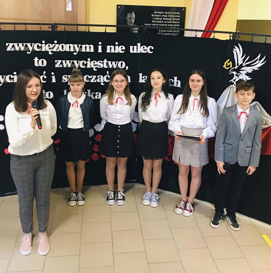 W dniu dzisiejszym w naszej szkole odbyła się uroczysta akademia z okazji 104 rocznicy odzyskania przez Polskę niepodległości. Montaż słowno- muzyczny został przygotowany przez uczniów klasy VII pod kierunkiem p. Ewy Pieczonki i p Marty Pietron.