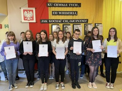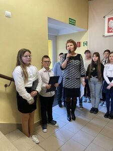 Na zakończenie akademi pani dyrektor Aurelia Mącior wręczyła dyplomy uczniom, którzy osiągnęli najlepsze wyniki w konkursach organizowanych przez p. Marzenę Świerczek i p. Edytę Potok.