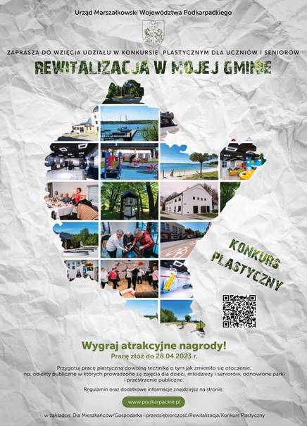 Serdecznie zachęcamy do udziału w konkursie plastycznym pt. „Rewitalizacja w mojej gminie” organizowanym przez Urząd Marszałkowski Województwa Podkarpackiego.