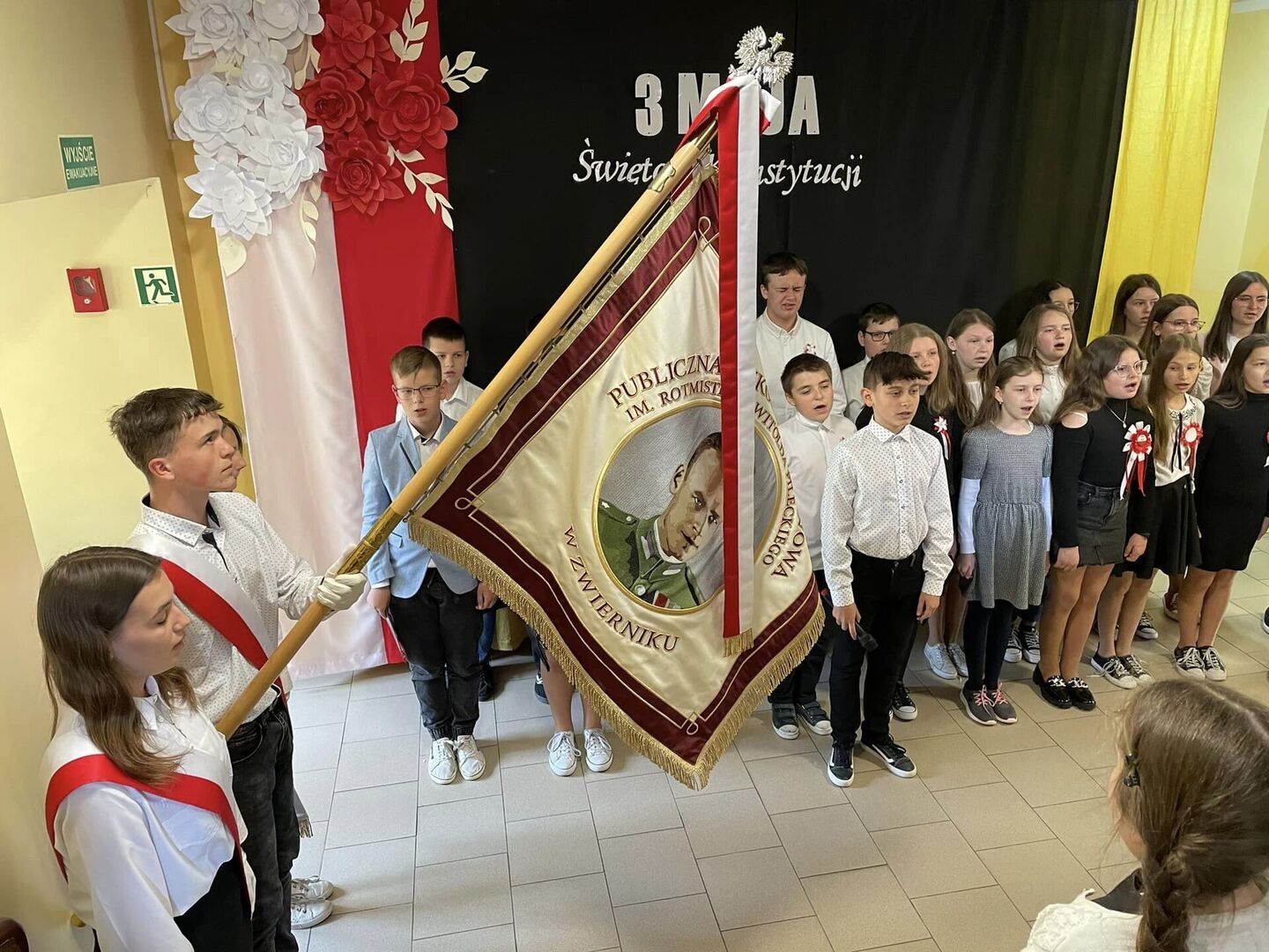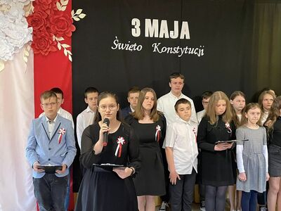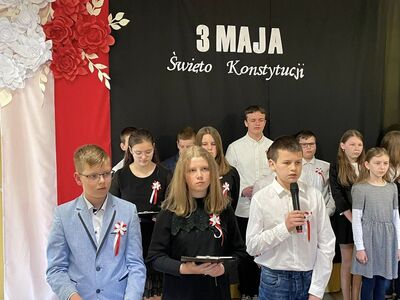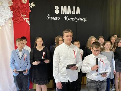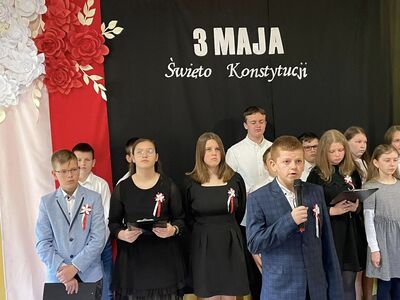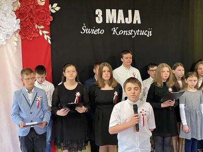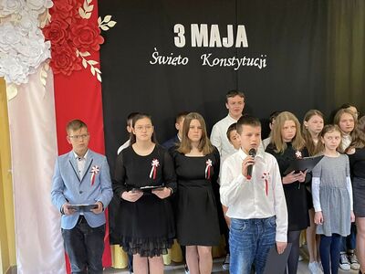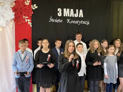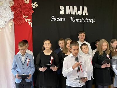 W dniu dzisiejszym uczniowie naszej szkoły wzięli udział w uroczystej akademii z okazji uchwalenia Konstytucji 3 maja. Część artystyczną przygotowali uczniowie klasy IV, VI i VII pod kierunkiem p. Bożeny Longosz- Wolańskiej.