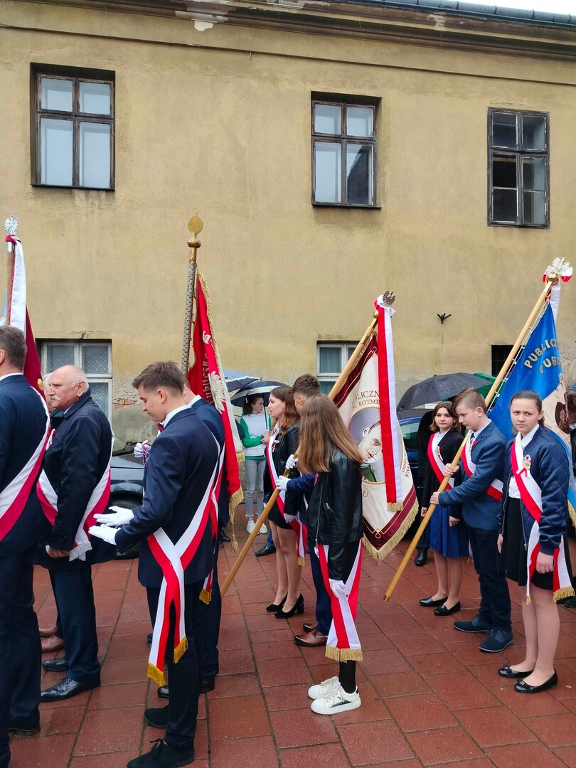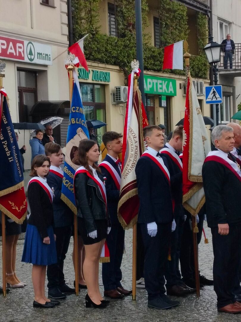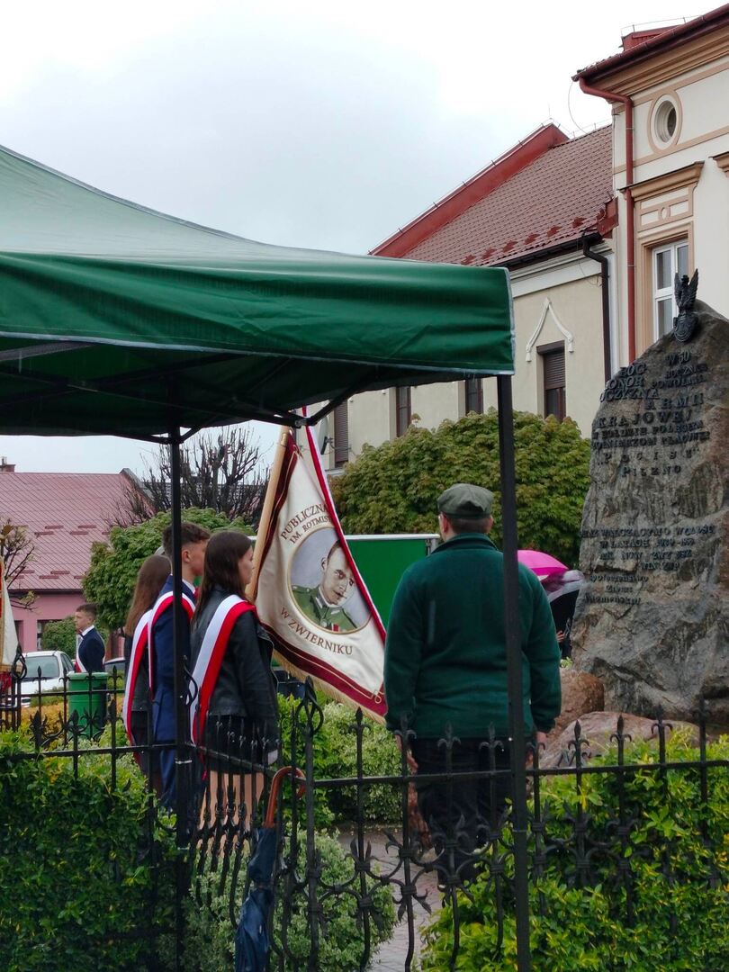 W dniu dzisiejszym poczet sztandarowy Publicznej Szkoły Podstawowej im. rtm. Witolda Pileckiego w Zwierniku w składzie: Klaudiusz Mazur- chorąży oraz Sylwia Dziedzic i Kinga Mazgaj- asysta wraz z opiekunem p. Edytą Potok uczestniczył w uroczystościach związanych z obchodami 232 rocznicy uchwalenia Konstytucji 3 Maja .