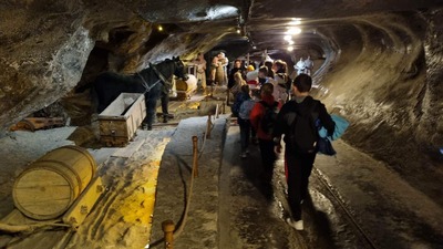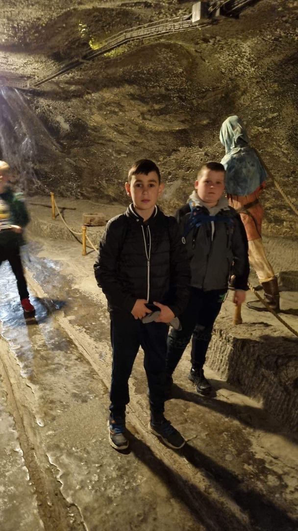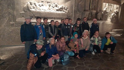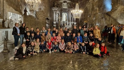 W piątek 28 kwietnia uczniowie z klas I, II, III i IV wraz z wychowawcami pojechali na wycieczkę do Kopalni Soli w Wieliczce. Pod opieką Pani przewodnik zwiedzali szlak turystyczny w kopalni. Poznali tajemnice kopalni, legendę księżnej Kingi, która przyniosła bogactwo soli na polską ziemię. Podziwiali wspaniałe rzeźby i komory oraz podziemne jeziora. Po zwiedzaniu poszliśmy na obiad do restauracji "Kopalnia Smaku". Kolejnym punktem wycieczki była sala zabaw "Ampa". Podczas zabaw uczniowie mogli skorzystać