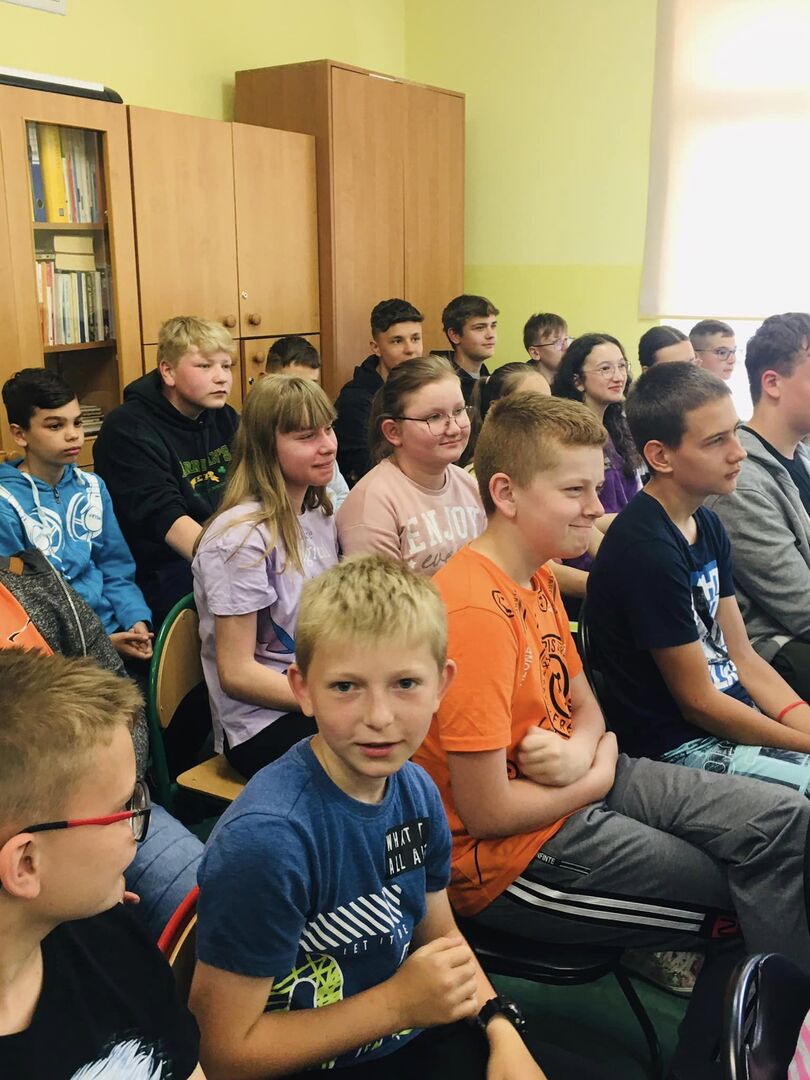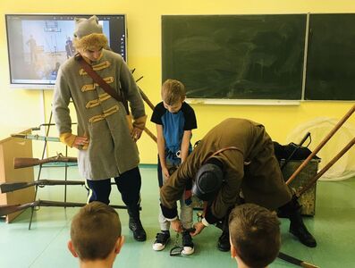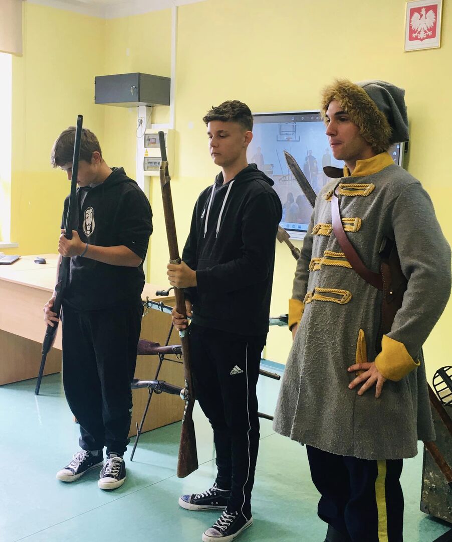 Pokaz i prelekcja były atarkcyjne, ponieważ prowadzący zaagażowali uczniów, którzy mogli bezpośrednio zapoznać się z umundurowaniem i uzbrojeniem wykorzystywanym w powstaniach oraz wykazać się swoją wiedzą na temat historii.