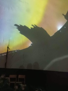 Pod ogromną kopułą namiotu w kształcie półkuli, przy wykorzystaniu technik multimedialnych