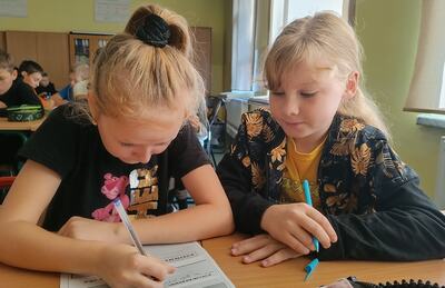 W warsztatach "Moja wojenna siostra" poprowadzonych przez p. Ewę Borowską uczestniczyli uczniowie klasy IV i V. Oparto je na opowieści Florka –11- letniego polskiego chłopca, który został obarczony wielkim sekretem. Jego zachowanie oznaczało ocalenie dla żydowskiej dziewczynki- Ewy. Podczas odkrywania wojennej opowieści, pisanej z perspektywy dziesięciolatka, uczniowie i uczennice zostali wprowadzeni