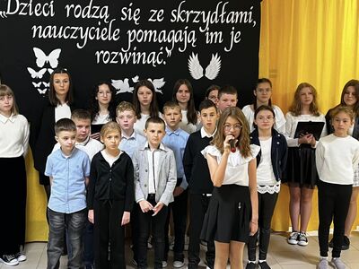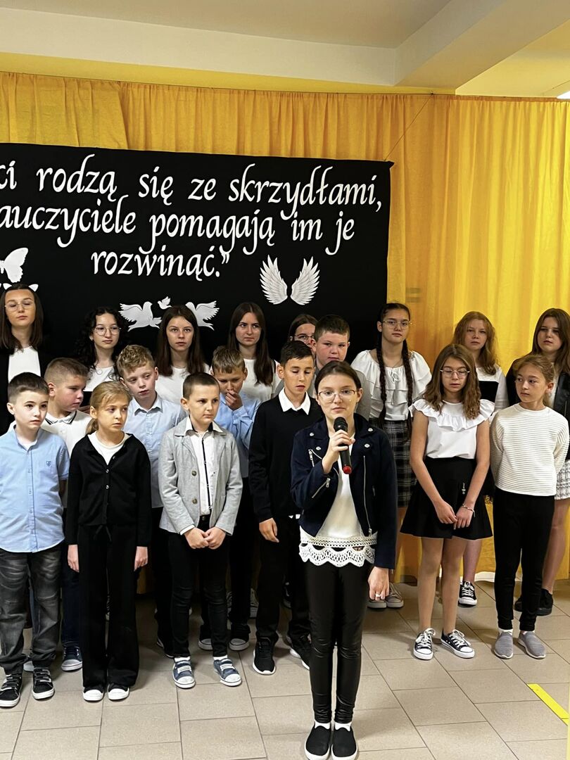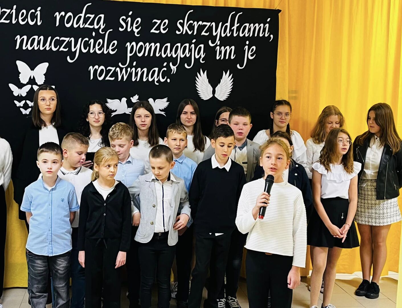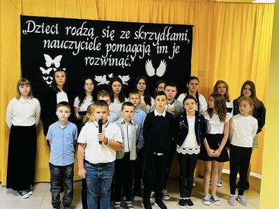 Te życzenia dla wszystkich nauczycieli i pracowników naszej szkoły z okazji Dnia Edukacji Narodowej przekazali uczniowie podczas akademii przygotowanej przez klasę IV i VIII pod kierunkiem pani Edyty Potok i pani Marzeny Świerczek. Uczniowie przypomnieli też o 250 rocznicy powstania KEN- pierwszego ministerstwa oświaty na świecie utworzonego 14 października 1773 r.