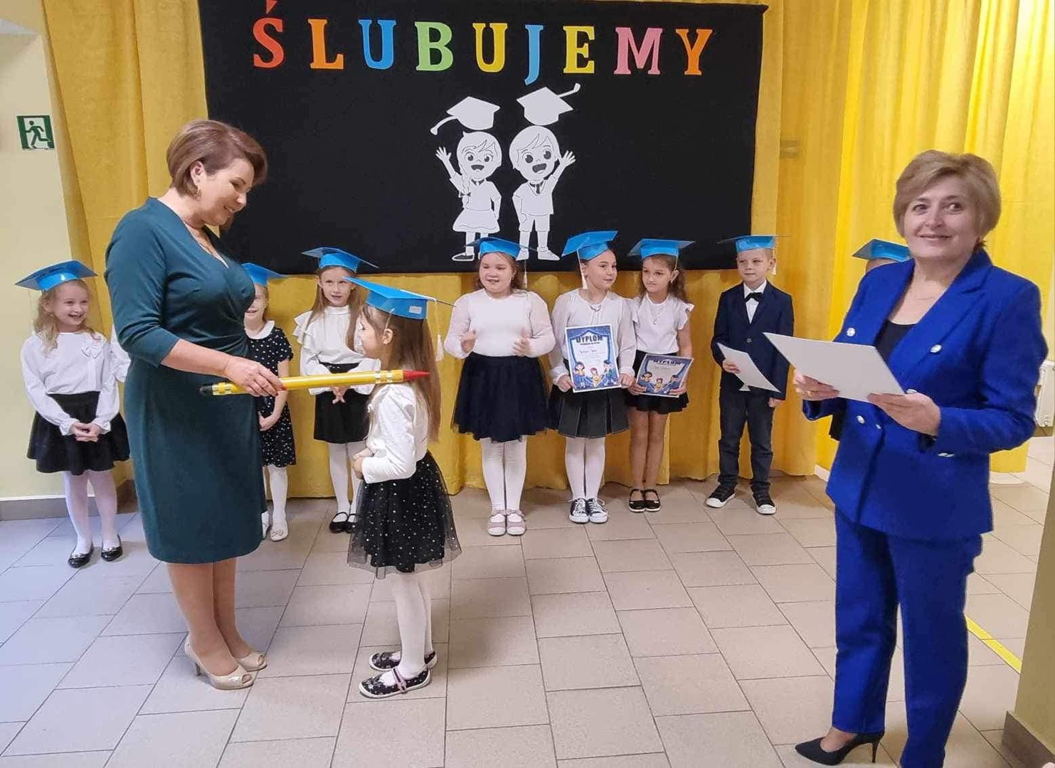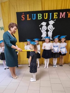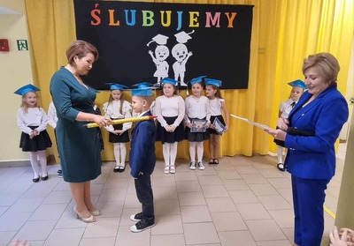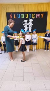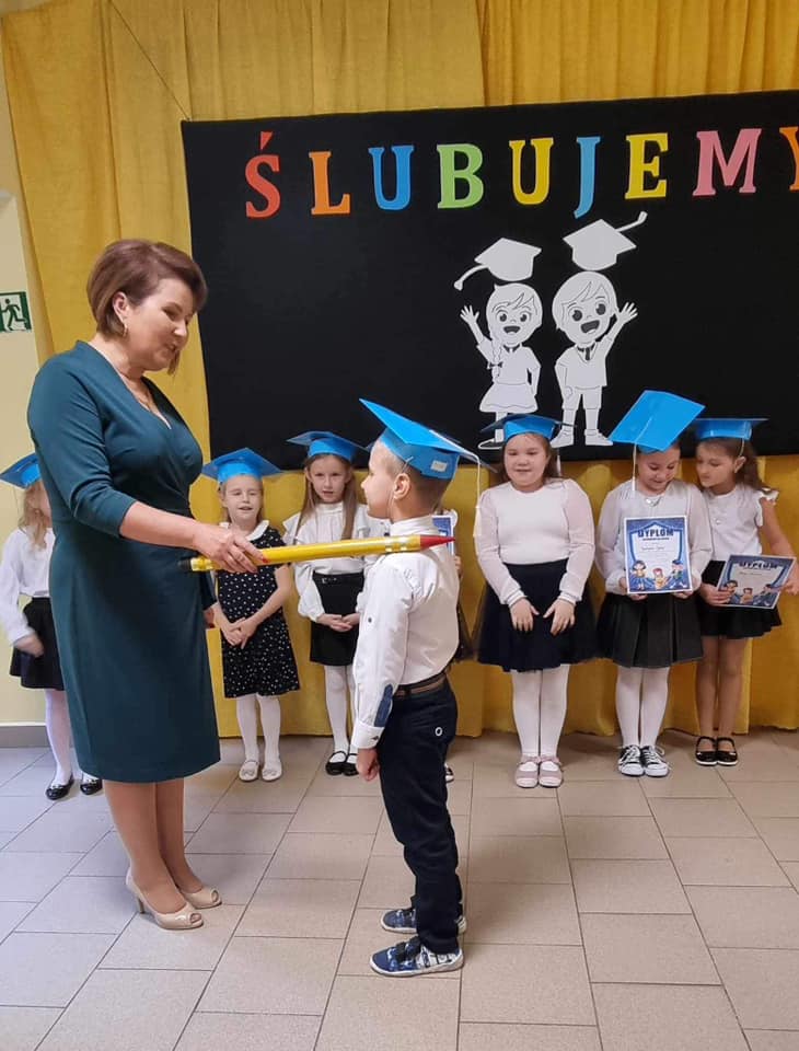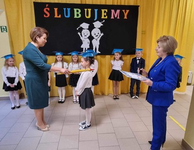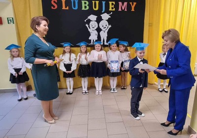 Aurelia Mącior dokonała symbolicznego pasowania na ucznia - życząc samych sukcesów
