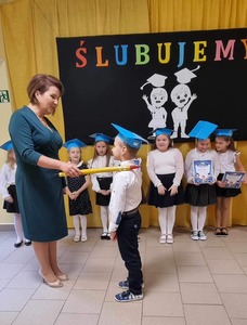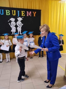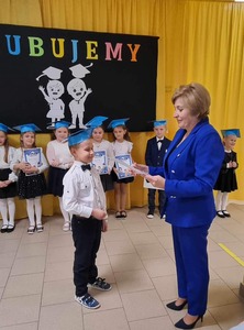 w długiej karierze szkolnej. Tradycyjnie najmilszą chwilą dla uczniów było wręczenie pamiątkowych dyplomów, bajeczek oraz słodkich upominków ufundowanych przez Radę Rodziców i sklepik szkolny "Smakus". Uroczystość została zakończona słodkim poczęstunkiem przygotowanym przez rodziców.