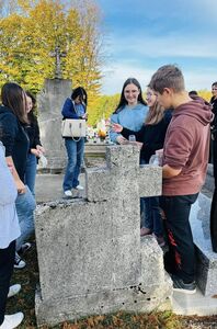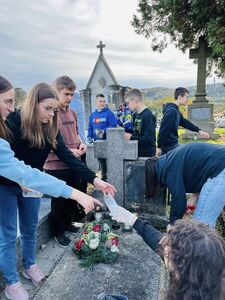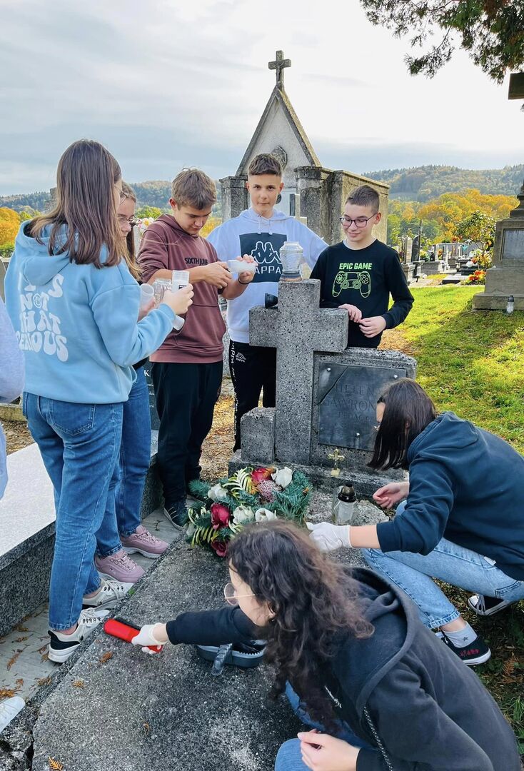 SZKOŁA PAMIĘTA Uczniowie klasy VII i VIII wraz z opiekunami SU- p. Martą Pietron i p. Ewą Pieczonką, w ramach akcji "Szkola Pamięta", wzięli dziś udział w porządkowaniu grobów fundatorów, dobroczyńców i byłych pracowników naszej szkoły. Galeria zdjęć Powiązane wiadomości PASOWANIE UCZNIÓW KLASY I SP. GMINNY KONKURS EKOLOGICZNY "BohaterON- WŁĄCZ HISTORIĘ" 2023 SZKOŁA PAMIĘTA PROJEKT "KROKUS" W NASZEJ SZKOLE VIII GMINNY KONKURS PIEŚNI PATRIOTYCZNEJ I ŻOŁNIERSKIEJ Drukuj Udostępnij Data dodania: 30.10.2023 Wyświetlono: 87 Aktualności