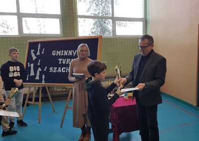 Uczniowie naszej szkoły: Jerzy Litawiński kl. VI, Oskar Gruszka kl. IV i Tymon Wiśniowski wraz z opiekunem p. Jackiem Studzińskim brali udział w Gminnym Turnieju Szachowym w Dobrkowie.