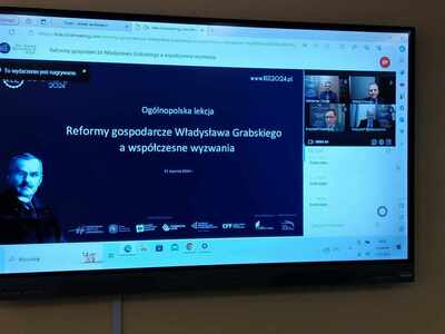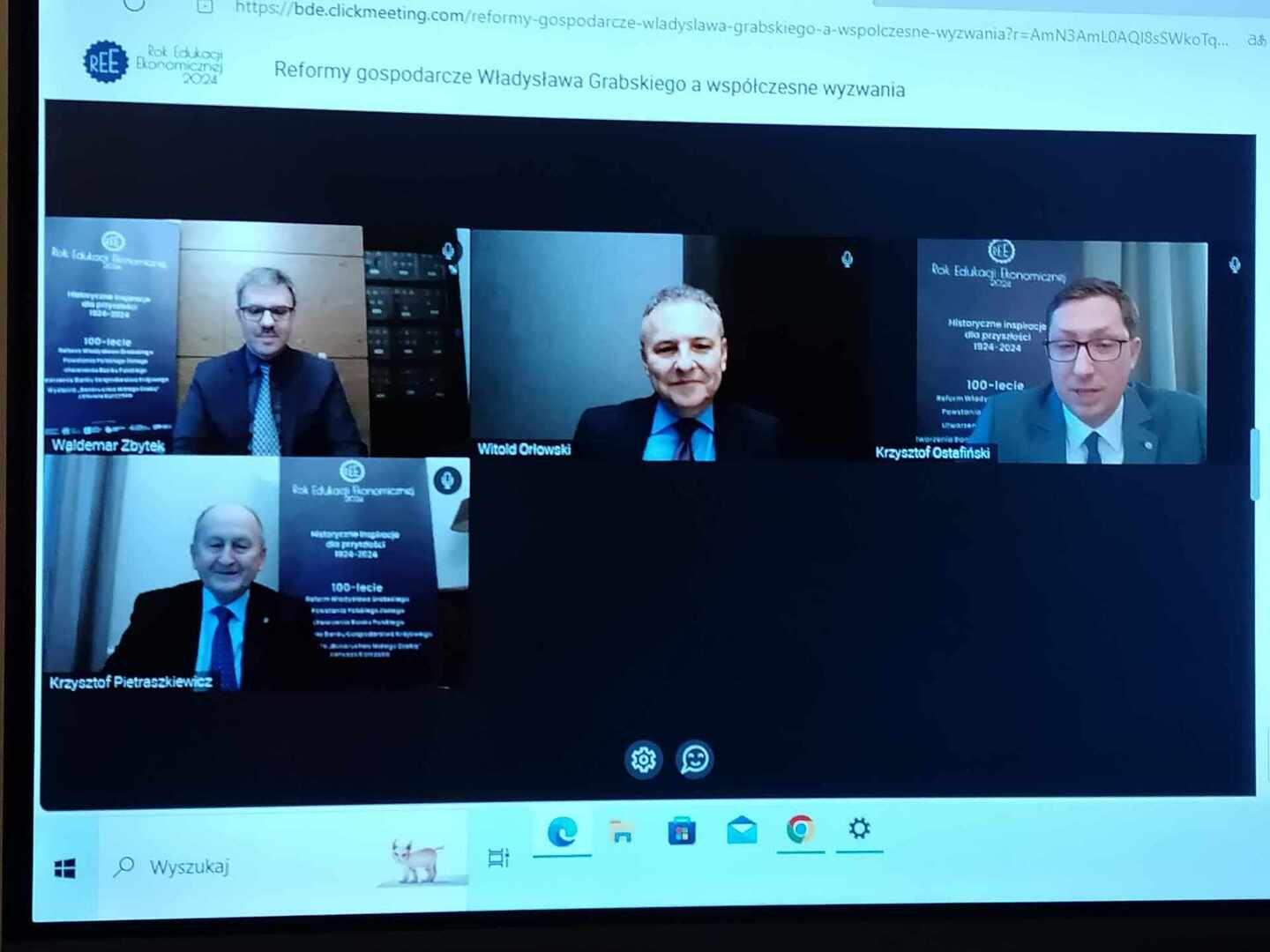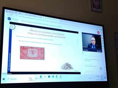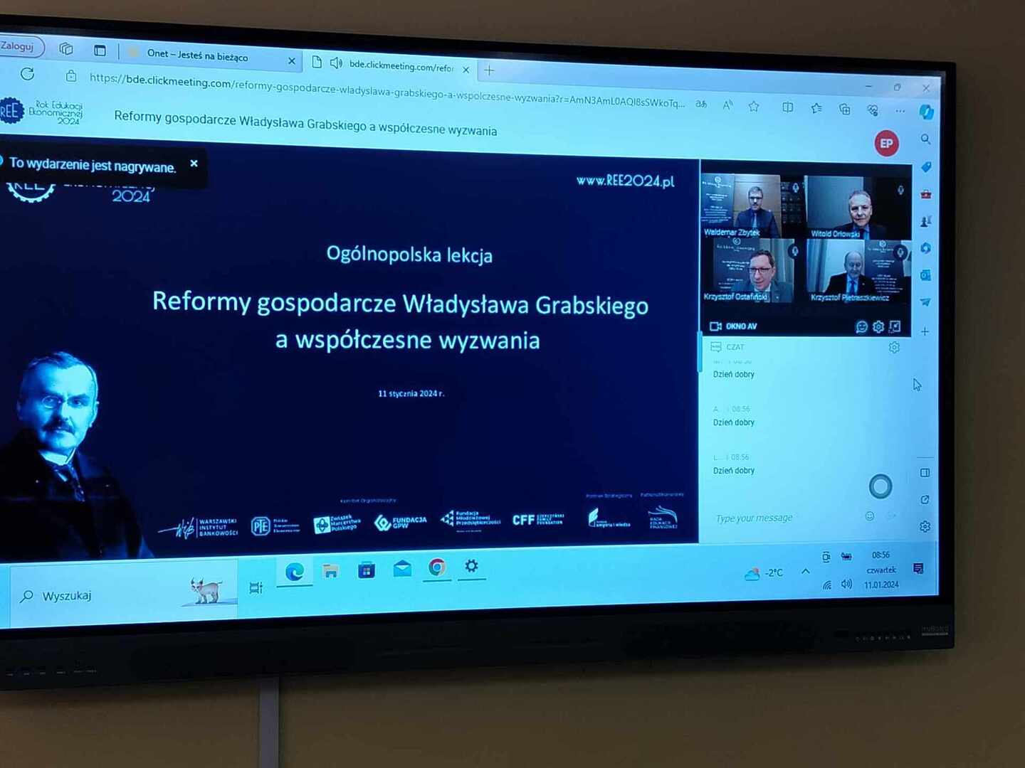 W dniu dzisiejszym uczniowie klasy VI i VIII SP wzięli udział w wykładzie online pt. ""Reformy gospodarcze Władysława Grabskiego a współczesne wyzwania", który inauguruje Rok Edukacji Ekonomicznej.