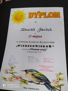 Jury doceniło talent Karola, który w kategorii klas I- III zajął II miejsce.