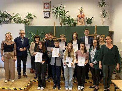 Natomiast w dniu dzisiejszym Igor Lechowski uczeń klasy VIII pod opieką pani Bożeny Longosz-Wolańskiej odebrał nagrodę za zajęcie II miejsca w Międzyszkolnym Konkursie Wiedzy Matematycznej organizowanym przez Zespół Szkół Ekonomicznych im. Janusza Korczaka w Dębicy.