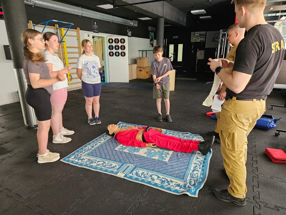 16 maja 2024 r.- PIERWSZY DZIEŃ TURNIEJU SZKÓŁ. ETAP SPORTOWY - obejmował konkurencje skok w dal, bieg krótkodystansowy, rzut piłeczką i sztafetę. Uczestnicy musieli również wykazać się przed strażakami umiejętnością udzielania pierwszej pomocy.