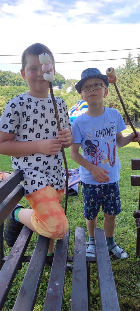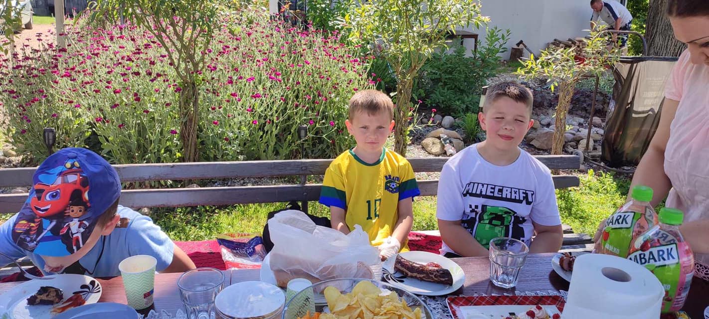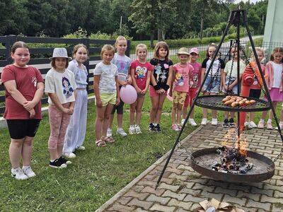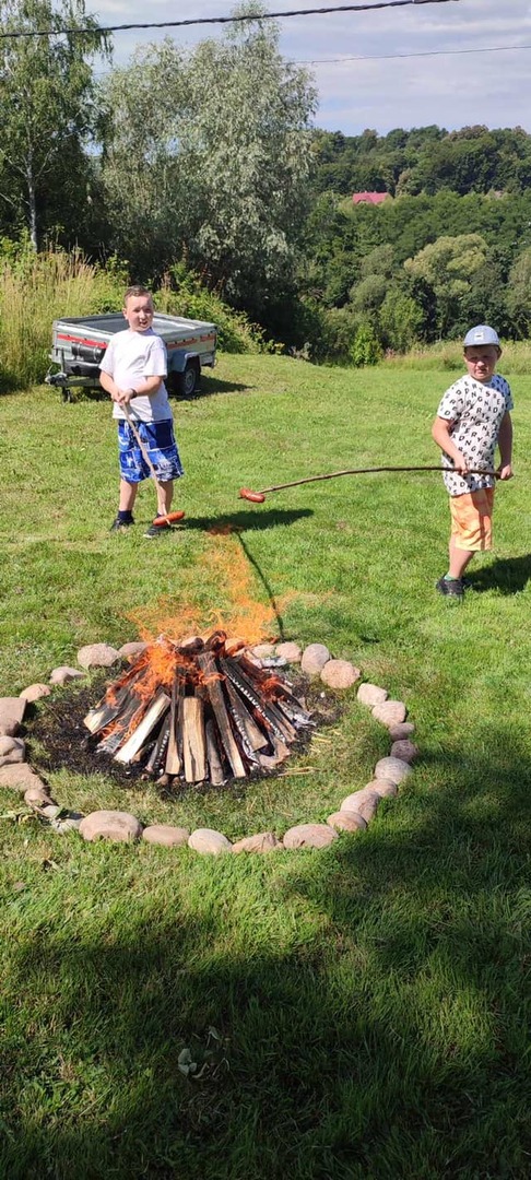 Dzięki uprzejmości Państwa Katarzyny i Andrzeja Papierników mogliśmy gościć w pięknym miejscu. Dziękujemy bardzo za zaproszenie. Oprócz pieczenia kiełbasek, pysznych smakołyków i słodkości były wspólne gry i zabawy na dmuchańcu, trampolinie, huśtawce.