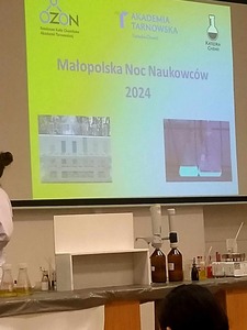 W piątek 27 września 2024 r. uczniowie naszej szkoły wraz z opiekunką p. Anna Rosek wzięli udział w Małopolskiej Nocy Naukowców w Tarnowie. Podczas wycieczki odwiedzili Pasaż Odkryć oraz Akademię Tarnowską. Na miejscu czekał na uczniów bogaty program obejmujący doświadczenia, warsztaty i pokazy . W trakcie zajęć przygotowali ekologiczne środki piorące, pogłębili wiedzę na temat zanieczyszczenia środowiska oraz zwiedzili ekspozycję stałą Pasażu Odkryć.