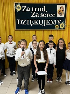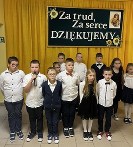 Dziś odbyła się uroczysta akademia z okazji Dnia Nauczyciela przygotowana przez klasę VI i chórek dziewczynek z klasy 3 pod kierunkiem pani Ewy Pieczonki i pani Marty Pietron. Serdecznie dziękujemy za pomoc pani Jolancie Placek.
