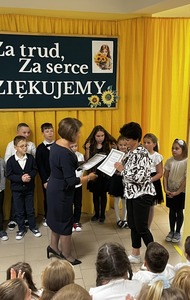 Na zakończenie akademii pani Dyrektor wręczyła dyplomy uznania pracownikom naszej szkoły.