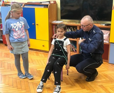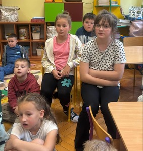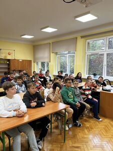 Najmłodsi omawiali zasady związane z bezpieczeństwem na terenie szoły oraz w drodze do i ze szkoły. Uczniowie z klas IV- VI zapoznali się z zagadnieniami związanymi z cyberbezpieczeństwem a najstarsi z kl. VII- VIII wysłuchali pogadanki na temat odpowiedzialności karnej nieletnich.