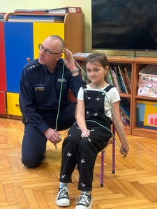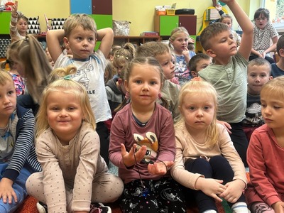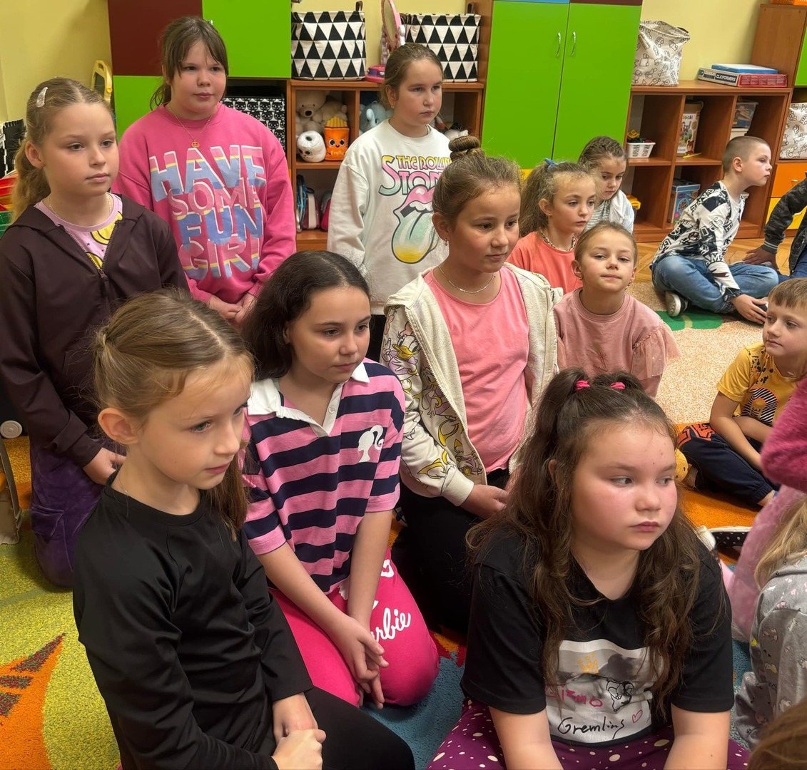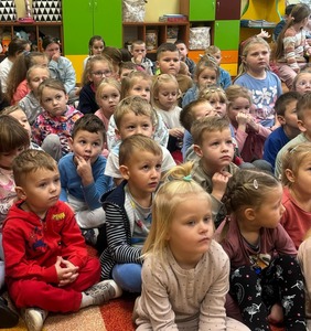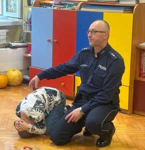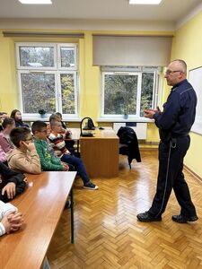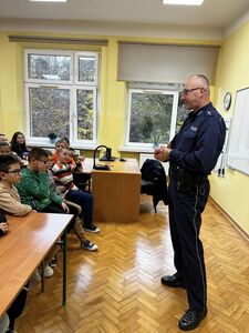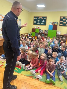 W dn. 29 października 2024 r. uczniowie naszej szkoly oraz wychowankowie przedszkola uczestniczyli w spotkaniu z policjantem asp. Arturem Rasiem.