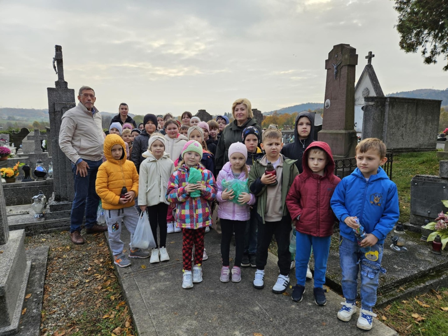 W środę 30 października uczniowie klas 1-3 z wychowawcami udali się na pobliski cmentarz odwiedzić groby bliskich i nauczycieli, którzy przed laty tu pracowali. Podczas pobytu na cmentarzu mieliśmy okazję spotkać i porozmawiać z prawnukiem Jakóba Gawrońskiego, pierwszego nauczyciela i założyciela szkoły w Zwierniku.