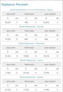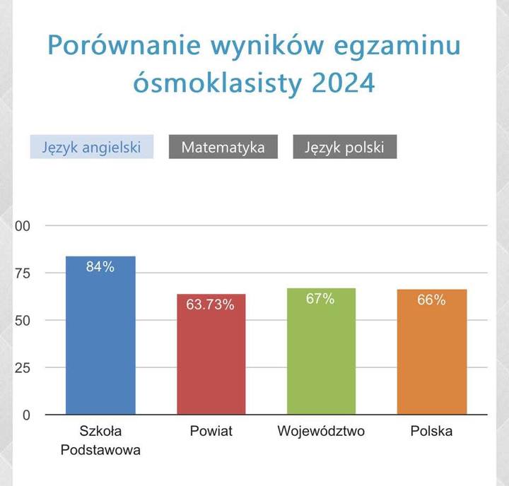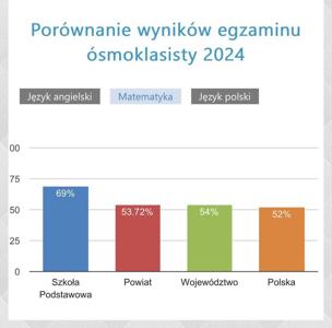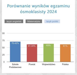 - język polski: 7 miejsce w powiecie, 2 w gminie;