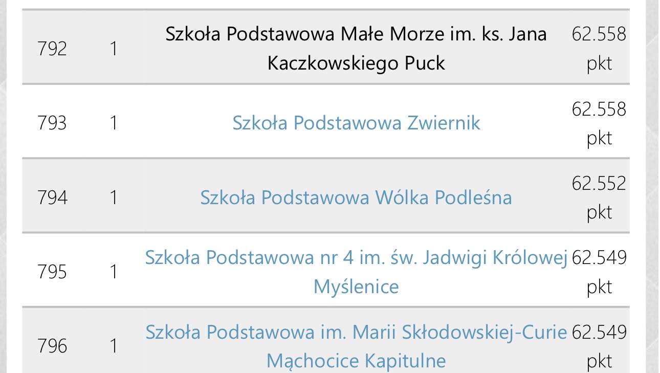 3. Zajęliśmy 1 miejsce w zestawieniu szkół w gminie Pilzno!
