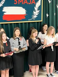 Natomiast 3 maja 2025 r. poczet sztandarowy w składzie: Janusz Mazgaj- chorąży oraz Julia Papiernik i Milena Krzykalak wraz z opiekunami p. Patrycją Jurek i p. Dawiedem Jurkiem wziął udział w gminnych obchodach Święta Konstytucji 3 Maja w Pilźnie.
