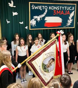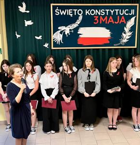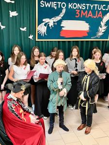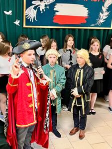 W dn. 30 kwietnia 2025 r. społeczność szkolna miała okazję uczestniczyć w niezwykłej lekcji historii, poświęconej Konstytucji 3 Maja. Scenki odegrane przez uczniów z klas VI,VII I VIII przypomniała koleżankom i kolegom ważne wydarzenia z historii Polski. Akademia została przygotowana pod kierunkiem