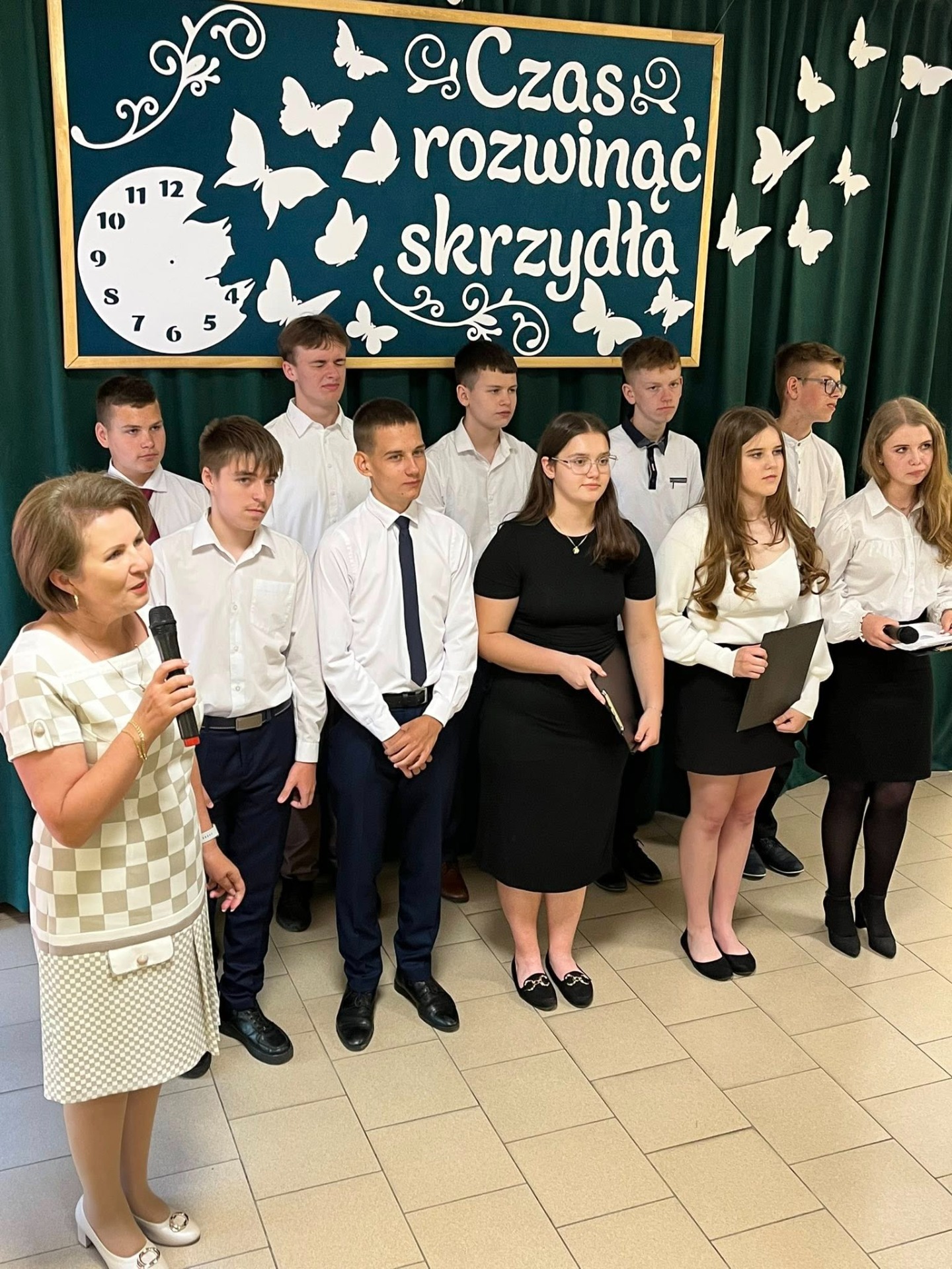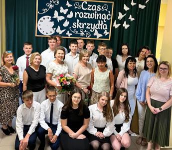 Przed Wami nowe wyzwania, nowe szkoły, nowi ludzie i nowe doświadczenia. Idźcie odważnie swoją drogą, nie bójcie się marzyć, nie bójcie się popełniać błędów. One także uczą. Pamiętajcie, że ta szkoła, Wasi nauczyciele i wychowawcy – zawsze będą częścią Waszej historii. Życzymy Wam powodzenia na egzaminach, dobrych wyborów i wielu pięknych chwil w kolejnych latach życia."