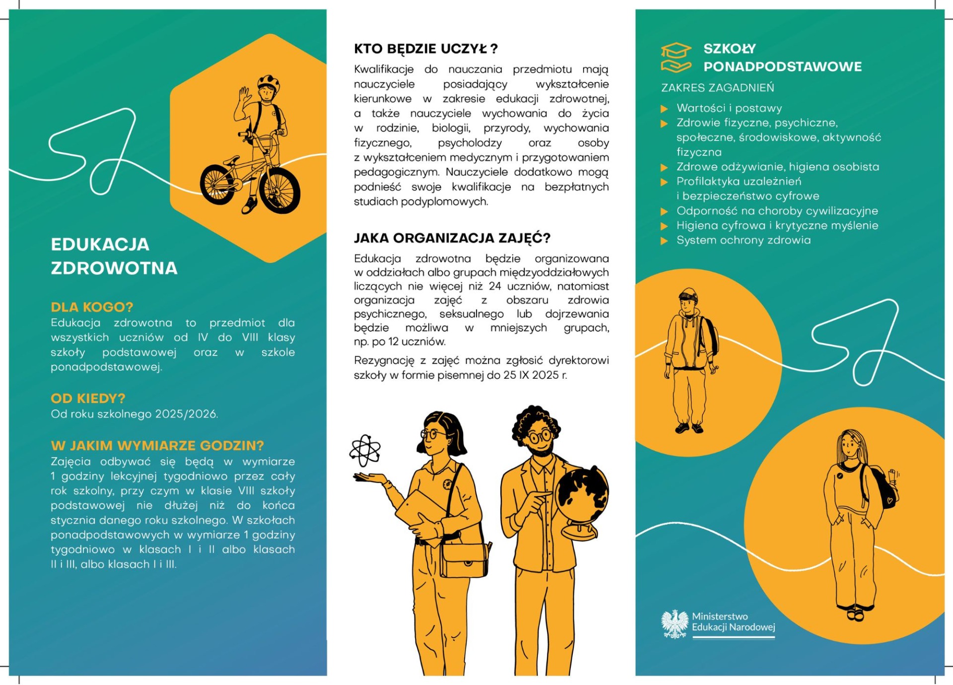 W ramach prowadzonej przez MEN kampanii informacyjnej w zakresie „Edukacji zdrowotnej” została przygotowana ulotka, która opisuje zakres i cele nowego przedmiotu dostosowane do poszczególnych etapów edukacyjnych.