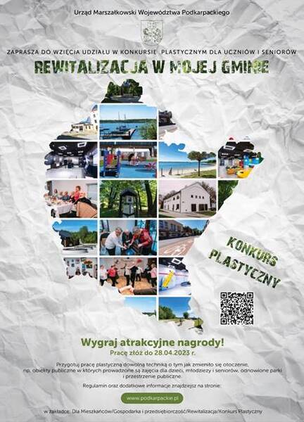 19.04.2023 Aktualności KONKURS PLASTYCZNY "REWITALIZACJA W MOJEJ GMINIE" Serdecznie zachęcamy do udziału w konkursie plastycznym pt. „Rewitalizacja w mojej gminie” organizowanym przez Urząd Marszałkowski Województwa Podkarpackiego. Czytaj więcej